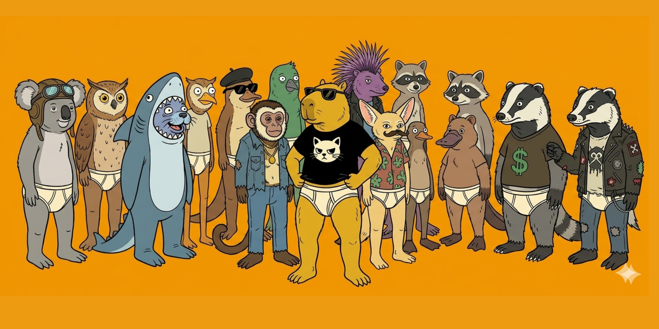 "We sell stuff with weird animals on it. T-shirts, bags, shoes, hats—you name it. If you’re as chaotic as these guys, just add to cart and let’s get weird."